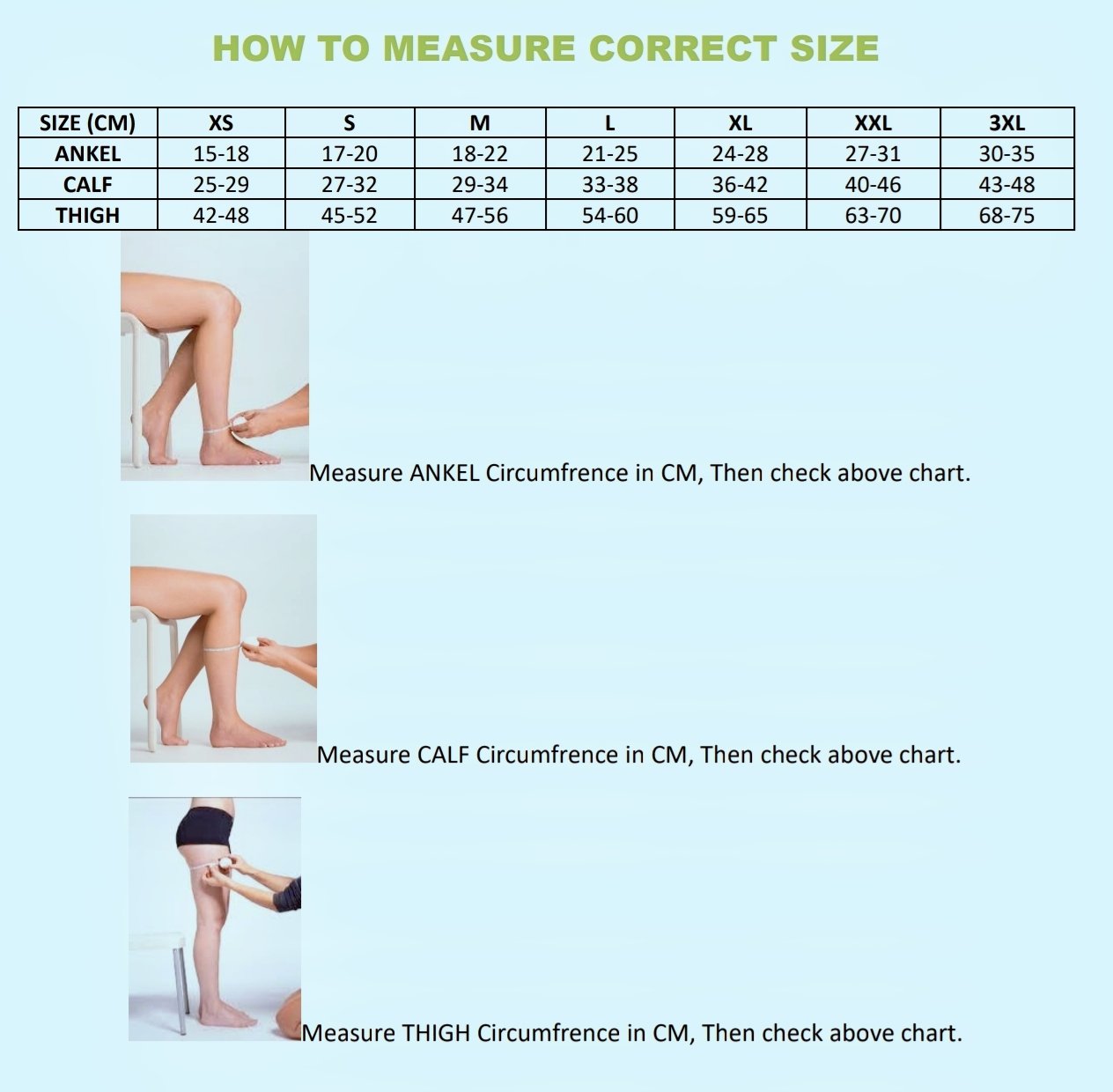 •Graduated Compression (23-32mmHG) Provides the highest compression at the ankle(32mmHG) , gradually decreasing up the leg(23mmHG) to promote venous blood flow back to the heart.